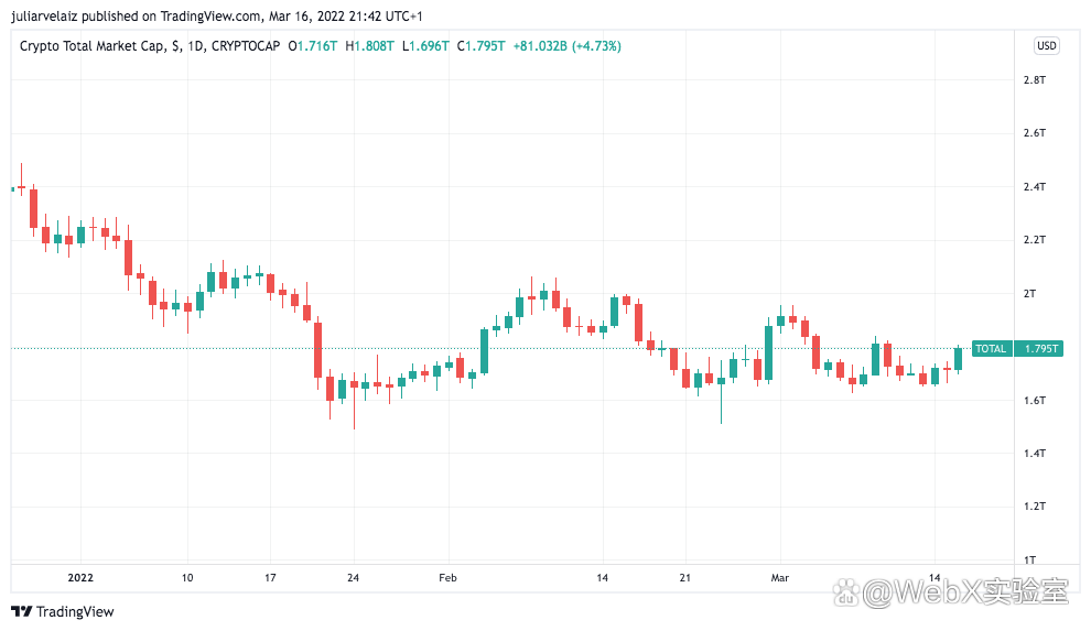 除了烏克蘭人所經歷的加密貨幣功能方面的用途,俄羅斯人可能會在加密貨幣中找到一種躲避盧布貶值的避難所。這為全球樹立了榜樣,並可能為市場帶來積極的前景。